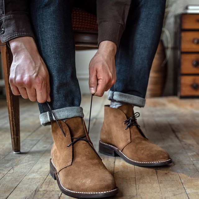 Yellow suede Chelsea boots